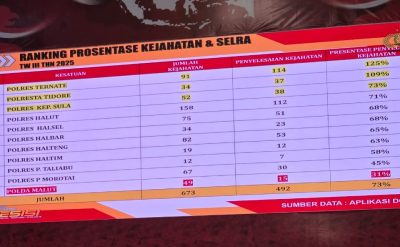 “Prestasi ini harus menjadi contoh bagi jajaran lain. Polres Ternate menunjukkan bahwa dengan kerja sama dan disiplin, target penyelesaian perkara bisa diraih dengan hasil optimal,”tegasnya.